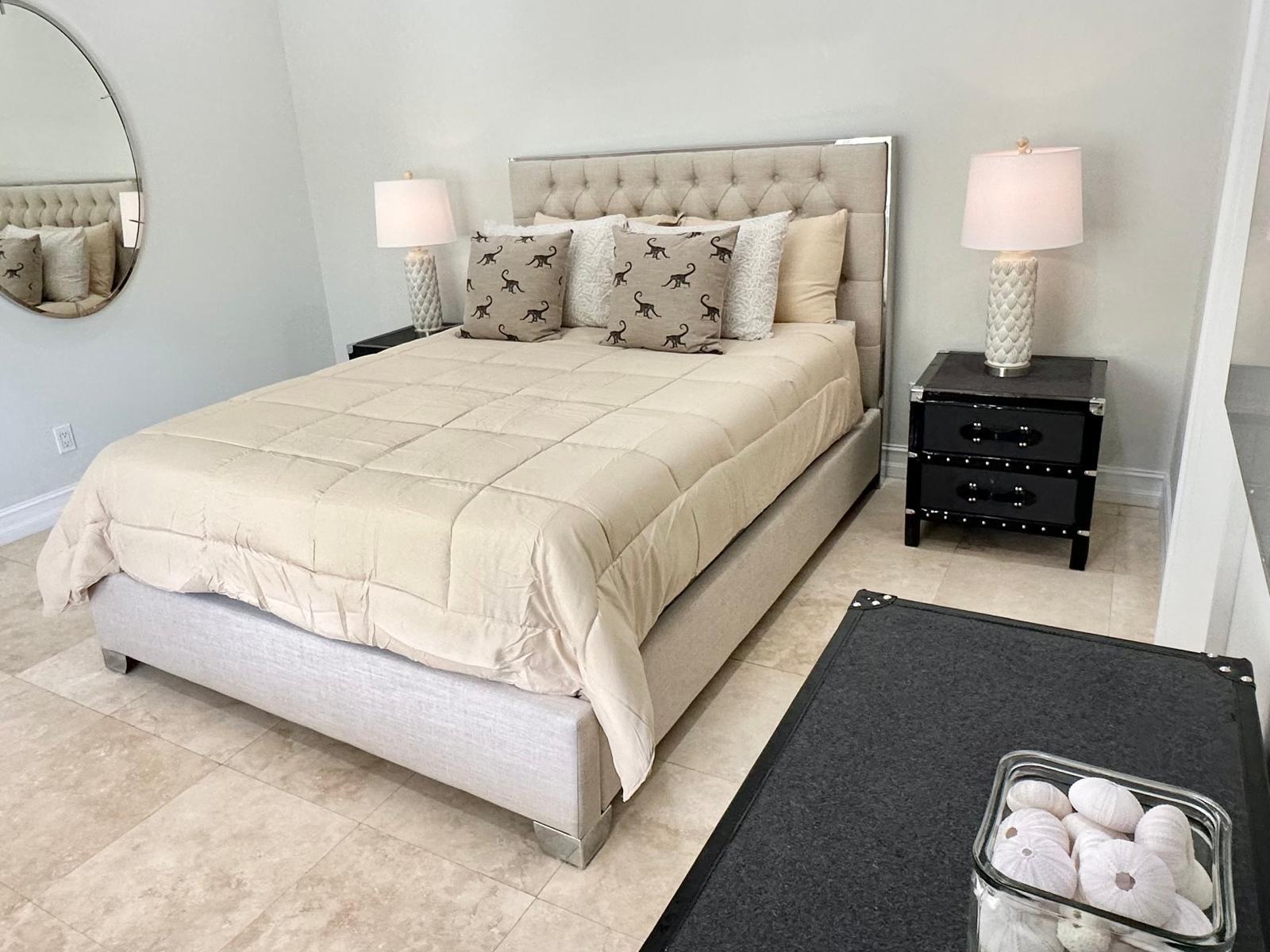 This turnkey, fully furnished 3-bedroom, 2-bathroom Anchorage residence is located on the second floor within the beachside, gated community of Palm Cay. The single-level condo offers approximately 1,500 sq. ft. of well-designed living space with travertine tile flooring throughout and 9-foot ceilings. The open-plan kitchen features stainless steel appliances, granite countertops and a breakfast bar, flowing into the living and dining areas. The primary bedroom includes an en suite bathroom, and the residence also offers central air conditioning, an in-unit washer and dryer, ample storage and a standby generator. A covered balcony provides a comfortable spot to enjoy morning coffee. The unit is professionally furnished and fully equipped, including linens, kitchenware, cutlery and small appliances, allowing for immediate occupancy. Palm Cay offers 24-hour security, beach access, a dockside café, restaurant, marina and walkable surroundings. The community is conveniently located near grocery stores and schools, including the International Baccalaureate school, and everyday amenities.