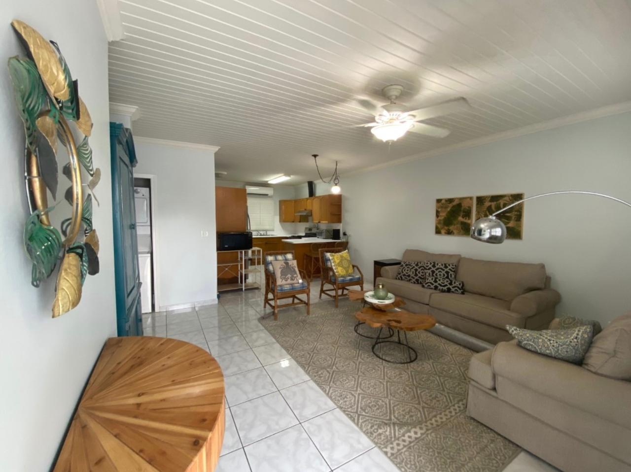 This 2 bed 2 bath fully furnished apartment is situated in a quiet, gated community, and centrally located. Enjoy the mature trees and the shaded outdoor sitting area, perfect for BBQ'ing. The inside is pet friendly with tile floors throughout. Enjoy the open concept and many new upgrades, including new white countertops, new stackable washer/drier and a standby generator on site, capable of running all appliances and air conditioners. The apartment comes with 3 full sized parking spaces. Tenants are responsible for paying the electricity and BTC internet/phone bill, all other amenities are included.