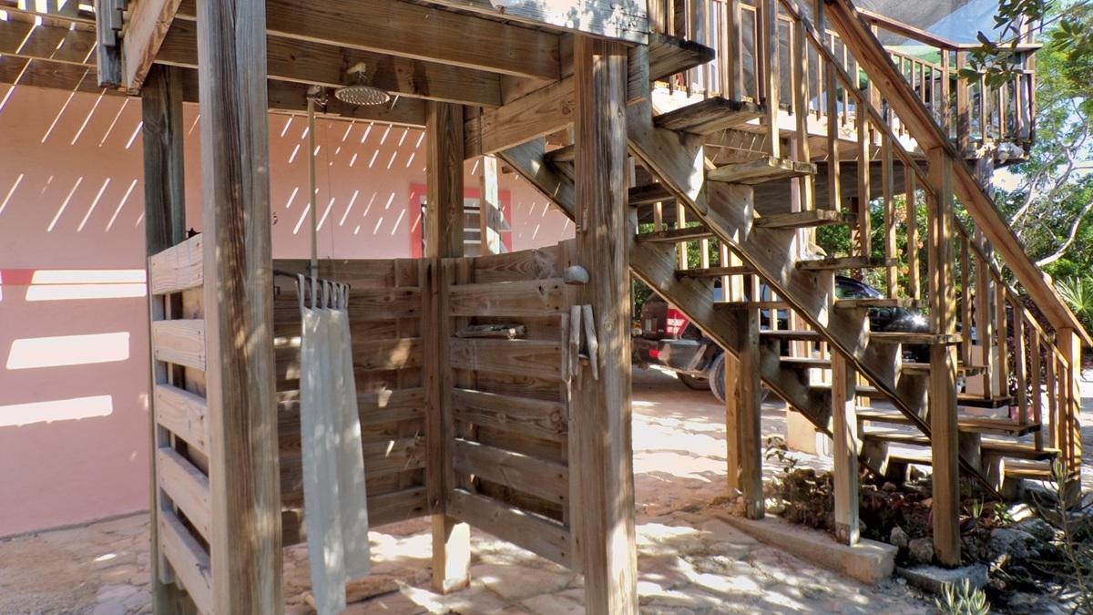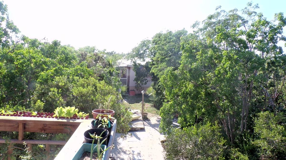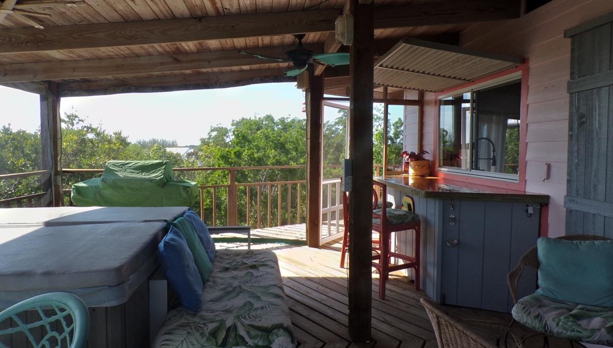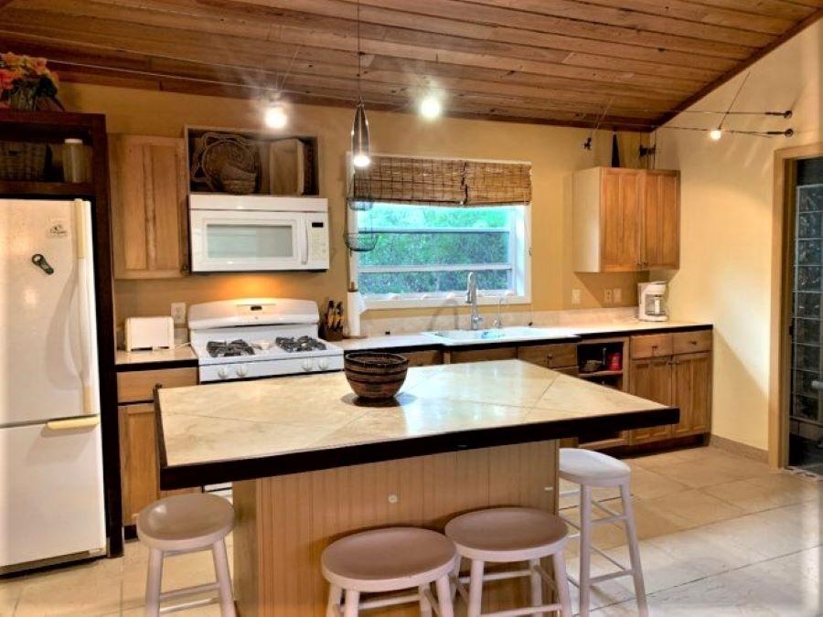 This spacious home along with a guest cottage sits in a tropical low maintenance setting with walkways between the homes where there is a hidden sundeck and garden area. This is a custom built 6-sided raised home with 360 degree views of the surrounding area including water and sunrise/sunset views. There are 2 bedrooms, 2 bathrooms, office/extra bedroom with an open plan Kitchen, dinning and living room. Ceilings are open beam with a windowed cupola, and ceiling fans. A screened in area with plenty of seating, an outdoor bar and a 7 person hot tub sits in the perfect location for the right mix of sun, shade and breeze. The ground level has a 2-car covered carport, with an additional 1,200 sq. ft. workshop, mechanicals, laundry, a bonus room with 1/2 bath. There is an 18,000 gallon cistern with plenty of storage above. The guest cottage is 600 sq. ft. with 1 bedroom, 1 bathroom, an open kitchen, dinning and living room. A screened front porch for enjoying the tropical breeze while relaxing in your hammock. There is also an outdoor shower and a 5,000 gallon cistern.