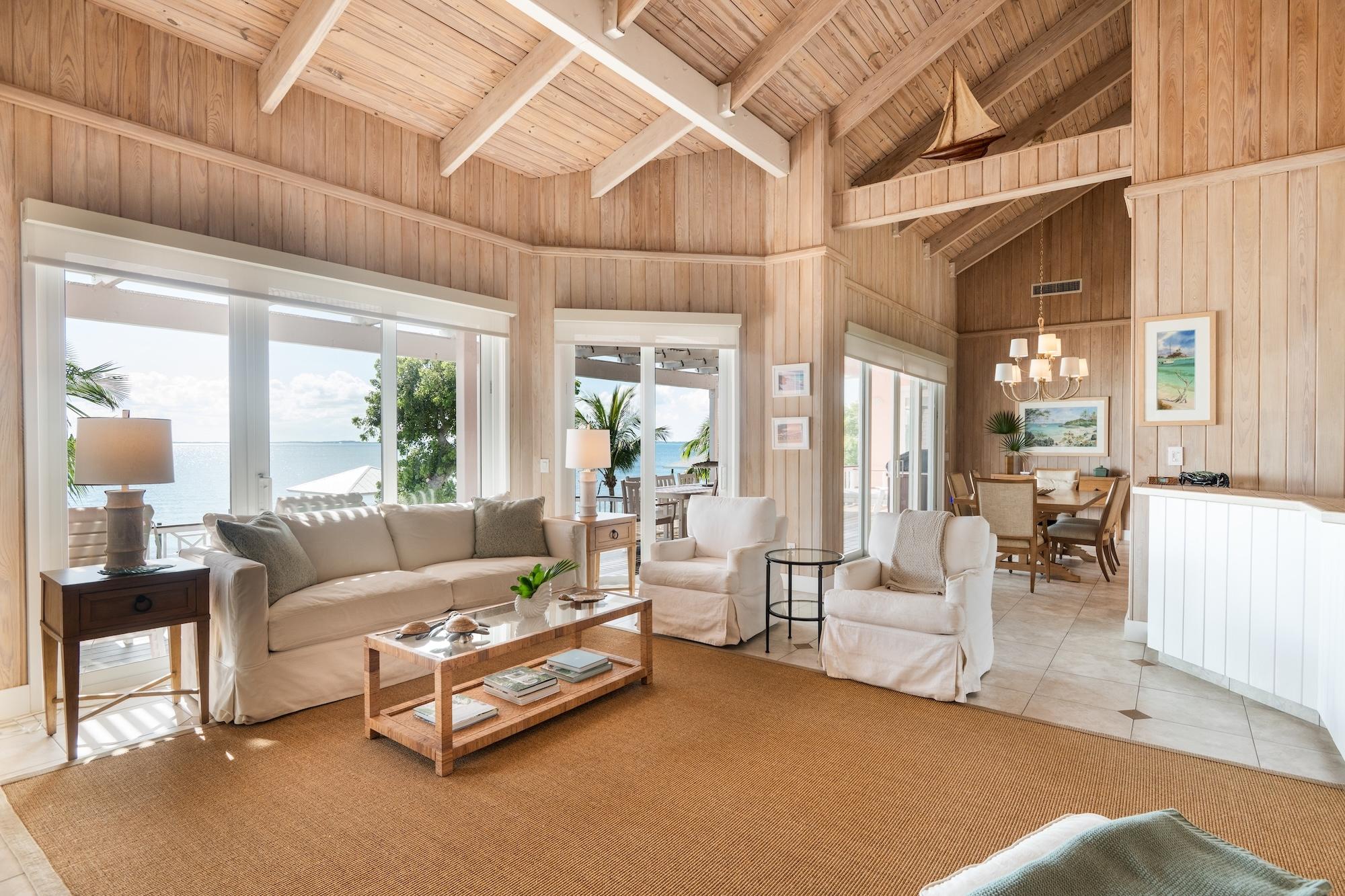 Welcome to Kealoha, a meticulously crafted 3,757 sq. ft. waterfront residence on Scotland Cay. Designed with masonry construction and exceptional durability, this home features wide Brazilian Teak IPE decks, impact-resistant windows and doors, and a new Galvalume roof delivering both luxury and peace of mind in a premier island setting. The open-concept living area flows effortlessly to expansive outdoor spaces overlooking tranquil waters, perfect for relaxing or entertaining. The main level offers three spacious bedrooms, including a master suite, while a separate one-bedroom suite with its own entrance provides added privacy for guests or flexible use as an office. Outdoors, a private dock with gazebo, an oversized marina slip with a Deco lift, and beautifully maintained grounds set the stage for effortless island living. Additional highlights include a whole-house Kubota generator, lower-level garage with workshop, new A/C units, and thoughtful structural engineering throughout making Kealoha a sanctuary of comfort, resilience, and refined coastal living.