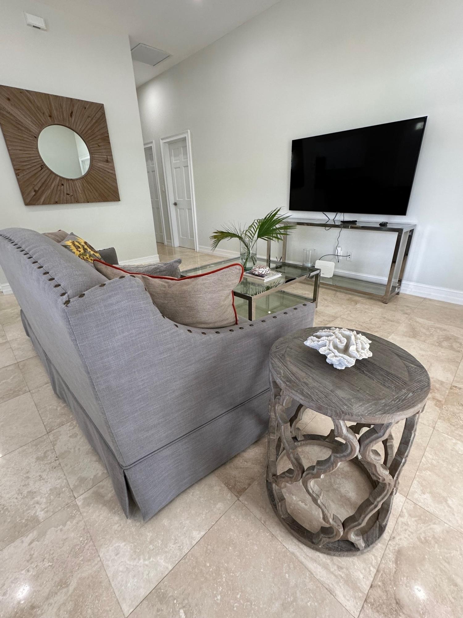 This turnkey, fully furnished 3-bedroom, 2-bathroom Anchorage residence is located on the second floor within the beachside, gated community of Palm Cay. The single-level condo offers approximately 1,500 sq. ft. of well-designed living space with travertine tile flooring throughout and 9-foot ceilings. The open-plan kitchen features stainless steel appliances, granite countertops and a breakfast bar, flowing into the living and dining areas. The primary bedroom includes an en suite bathroom, and the residence also offers central air conditioning, an in-unit washer and dryer, ample storage and a standby generator. A covered balcony provides a comfortable spot to enjoy morning coffee. The unit is professionally furnished and fully equipped, including linens, kitchenware, cutlery and small appliances, allowing for immediate occupancy. Palm Cay offers 24-hour security, beach access, a dockside café, restaurant, marina and walkable surroundings. The community is conveniently located near grocery stores and schools, including the International Baccalaureate school, and everyday amenities.