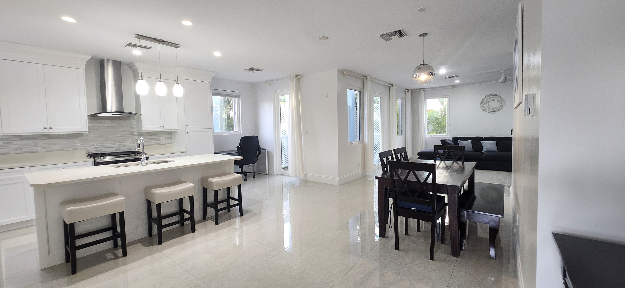 Modern, turnkey, very spacious and beautifully appointed townhouse featuring 2 ensuite bedrooms with walk-in-closets, 2.5-baths, open floor plan, top-tier finishes and appliances, including dishwasher, washing machine, and dryer, a bonus open room, covered patio and generous storage space. This property boasts high ceilings, 8-foot doors, and a backup generator. French doors in the living room and kitchen allow natural light to come in. Wes Bay St. Saffron Hill gated community with 24/7 manned security, pool, tennis and basketball court, gym, playground, and a 5-minute walk to the beach. $4,200.00 per month.