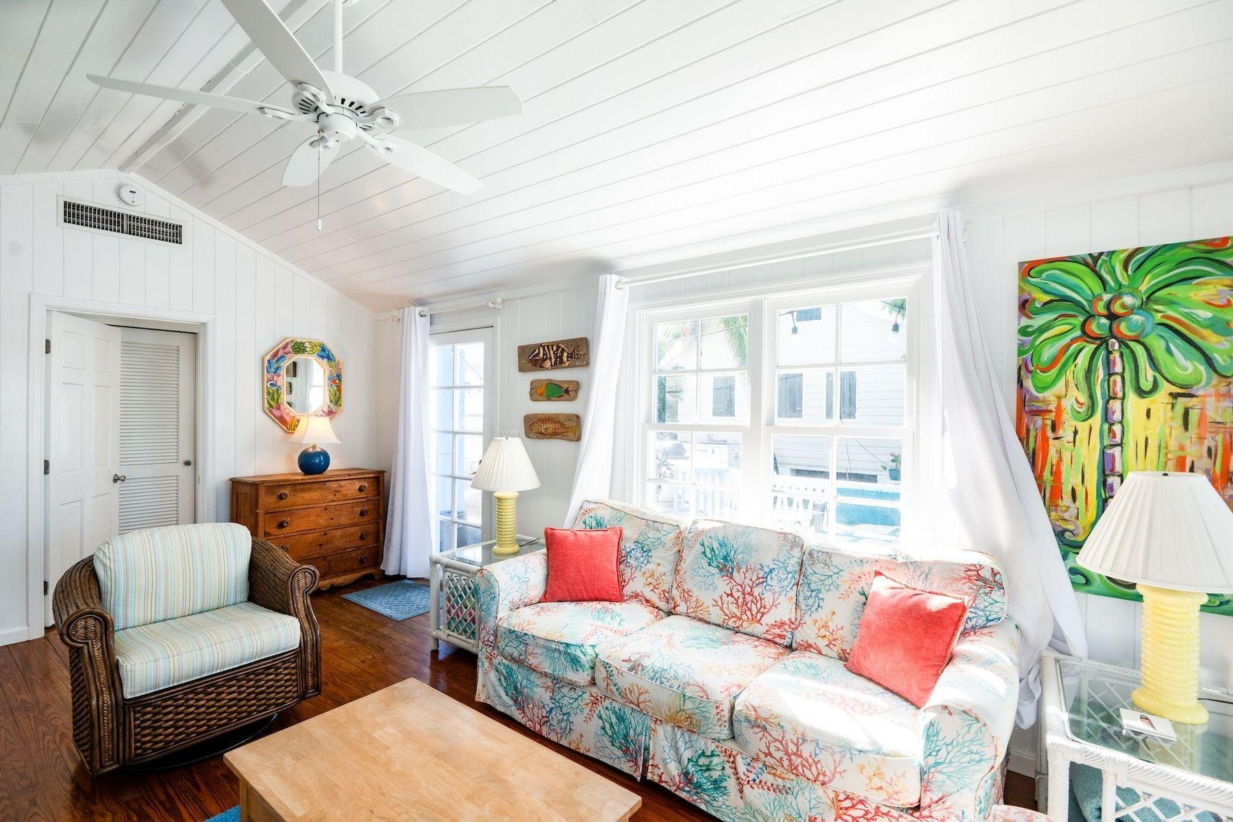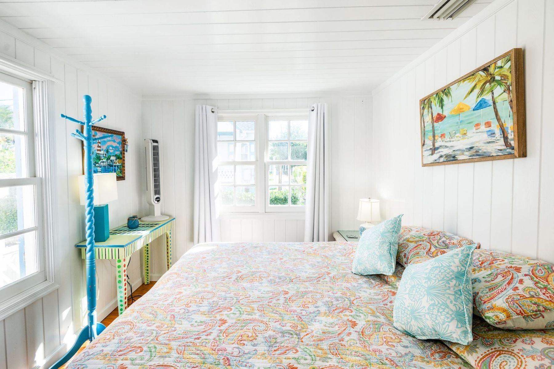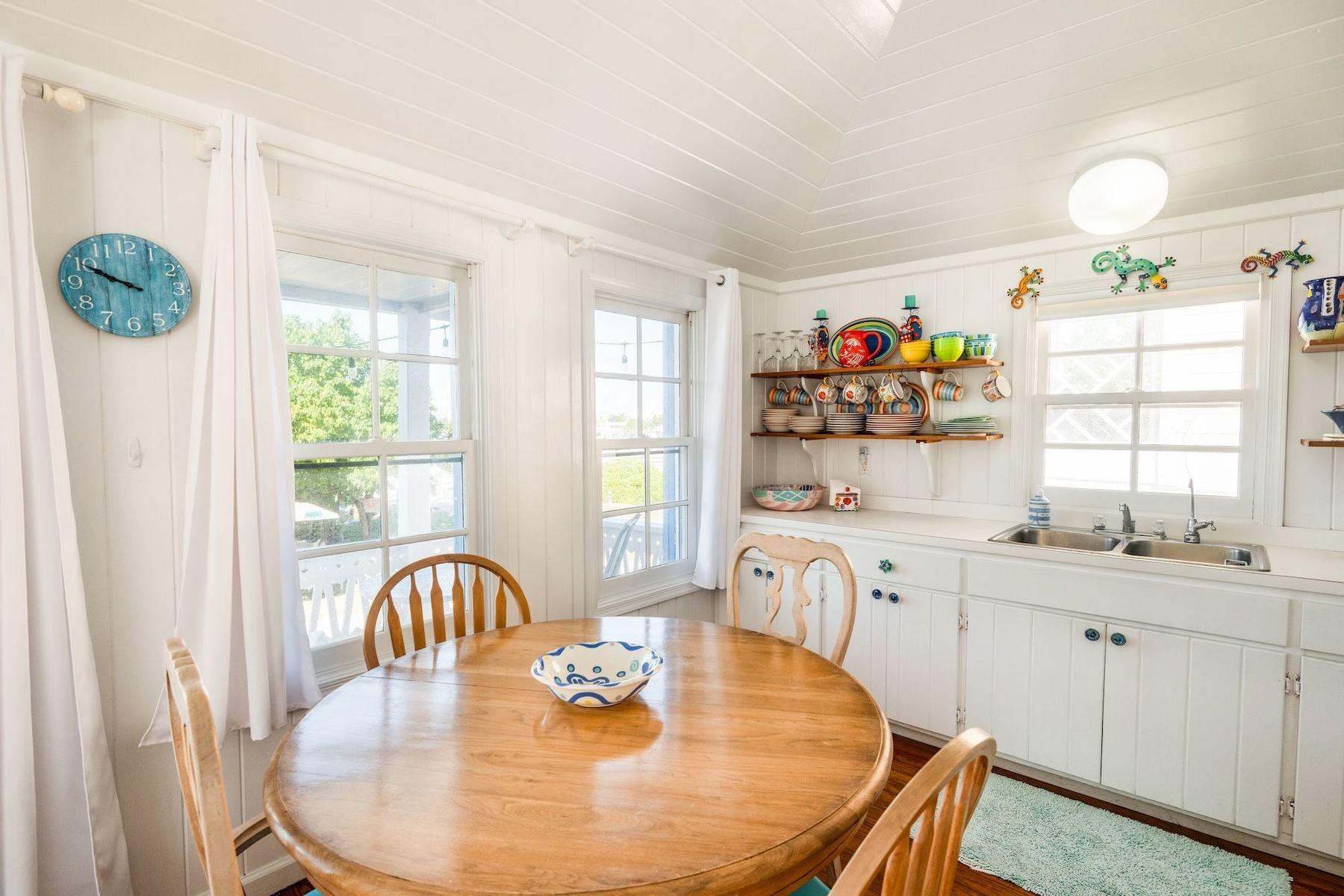 Bright, airy, and colourful home in the heart of Hope Town with postcard-perfect Elbow Reef Lighthouse views. The property has excellent storage and a flexible downstairs space, plus true boater appeal: private dock + parking and the ability to “pull your boat right up.” Layout has a kids’ bunk area, two king bedrooms—one ensuite—plus an extra full bath. Down stairs in the private bunk rooms, with access to basement, storage area for bikes & a basement with even more storage area plus a washer/dryer.