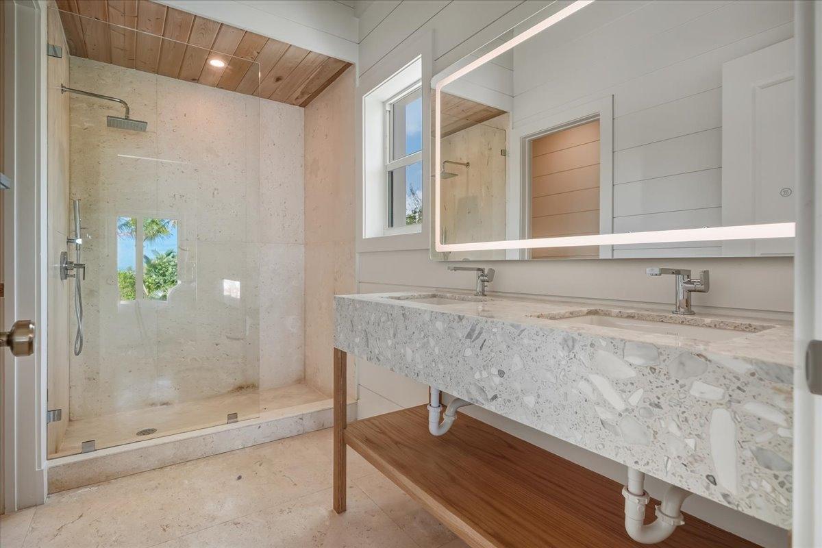 Experience Blu Wakes, an ultra-luxury five-bedroom, four-bathroom beachfront villa on the pristine shores of Hoopers Bay, Exuma — one of the most coveted stretches of beach in The Bahamas. This stunning, one-story architectural gem has been masterfully designed for modern coastal living, where refined elegance meets barefoot luxury. Step inside to discover an open-concept layout with vaulted ceilings, creating a grand sense of space and light. The modern, fully equipped kitchen with island bar and dining area flows effortlessly into the spacious living room. Two primary oceanfront suites each open to their own private terrace, offering uninterrupted sea views. The fourth and fifth bedrooms share a full bathroom, ideal for families or guests. One features a king bed and generous closet space, while the other is a bunk room with a queen and full bed, blending practicality and style for visiting friends or children. Outside, a refreshing pool sits just steps from the back terrace, kitchen, and living room — creating a seamless transition from luxury interiors to beachfront living.