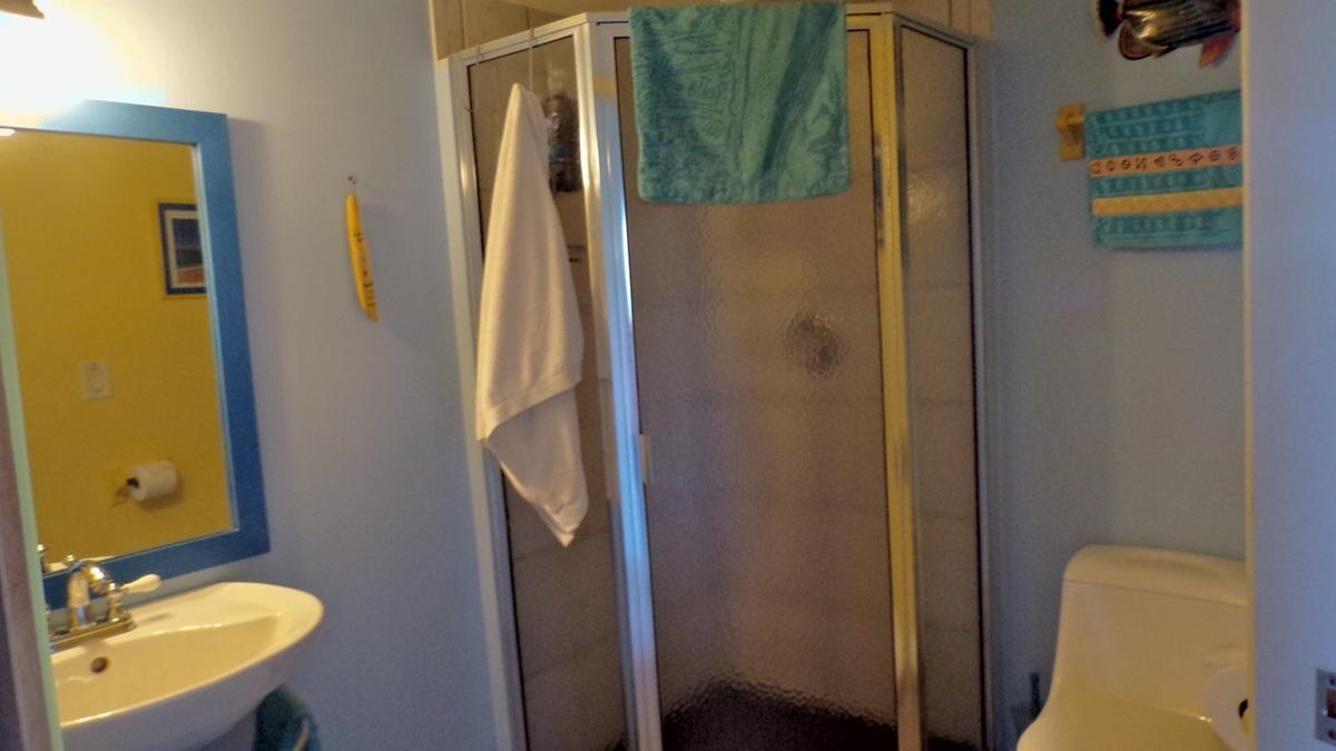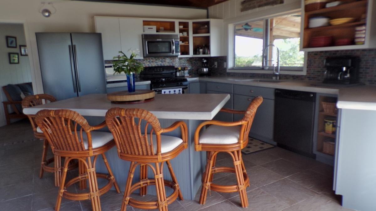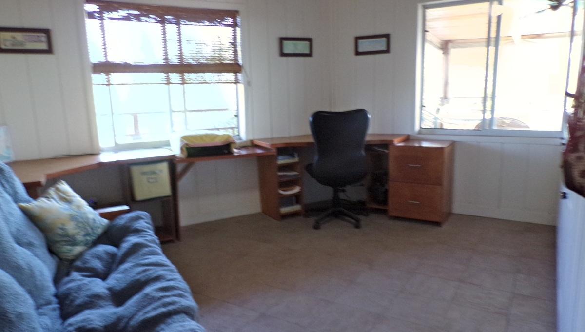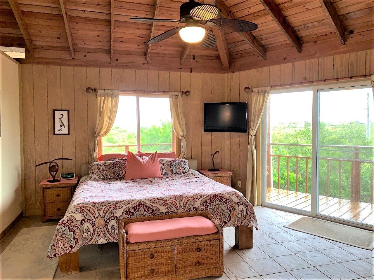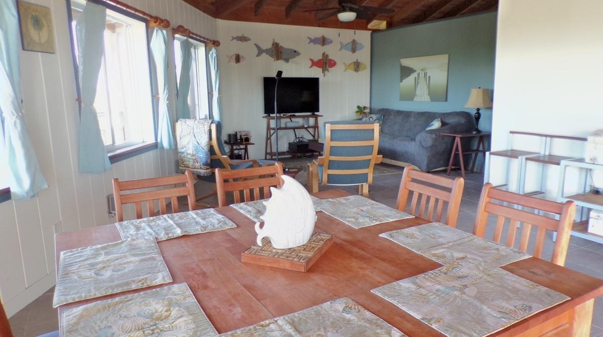 This spacious home along with a guest cottage sits in a tropical low maintenance setting with walkways between the homes where there is a hidden sundeck and garden area. This is a custom built 6-sided raised home with 360 degree views of the surrounding area including water and sunrise/sunset views. There are 2 bedrooms, 2 bathrooms, office/extra bedroom with an open plan Kitchen, dinning and living room. Ceilings are open beam with a windowed cupola, and ceiling fans. A screened in area with plenty of seating, an outdoor bar and a 7 person hot tub sits in the perfect location for the right mix of sun, shade and breeze. The ground level has a 2-car covered carport, with an additional 1,200 sq. ft. workshop, mechanicals, laundry, a bonus room with 1/2 bath. There is an 18,000 gallon cistern with plenty of storage above. The guest cottage is 600 sq. ft. with 1 bedroom, 1 bathroom, an open kitchen, dinning and living room. A screened front porch for enjoying the tropical breeze while relaxing in your hammock. There is also an outdoor shower and a 5,000 gallon cistern.