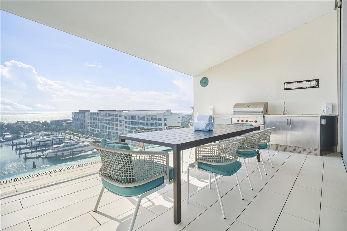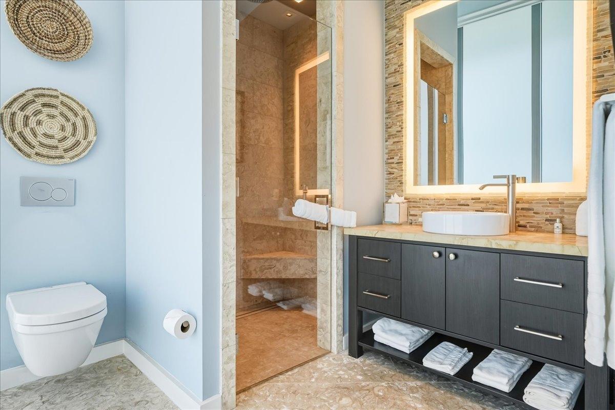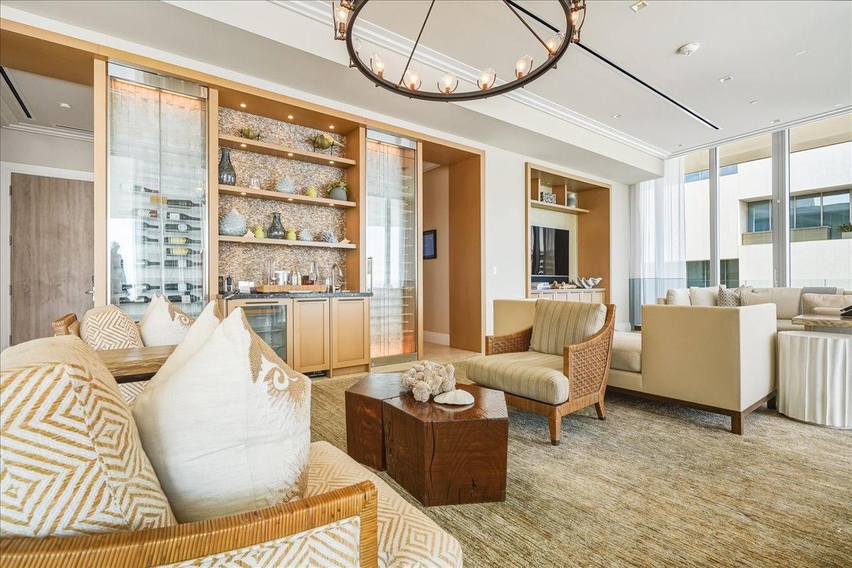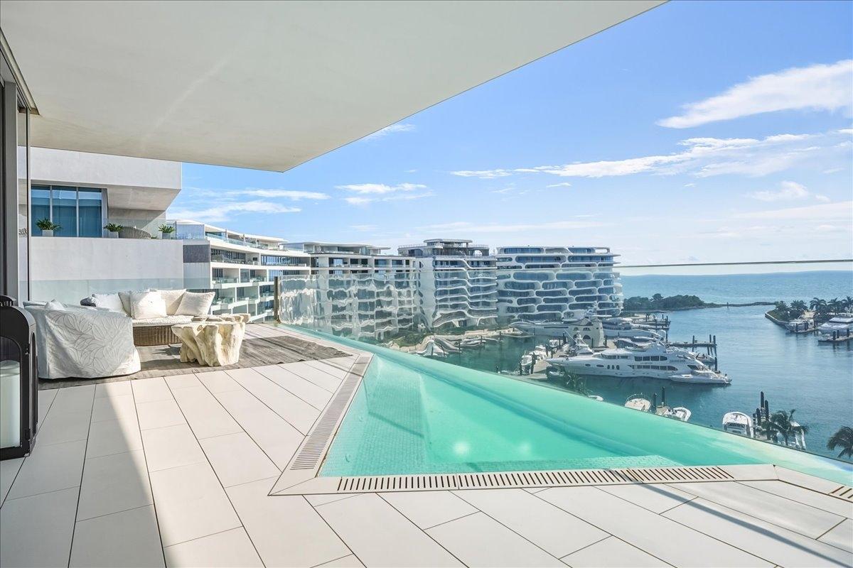 Honeycomb 7D, Albany, designed by Bjarke Ingels Group, is an iconic architectural masterpiece. This seventh-floor end unit is 5,046 square feet with 4 bedrooms and 4 ½ bathrooms. Being located just below the penthouse level, this unit has extensive ocean views for the living spaces and golf course views for the bedrooms. The fully furnished living area benefits floor-to-ceiling windows that open to the breathtaking wraparound terrace overlooking the 71-slip state-of-the-art mega yacht marina and turquoise blue waters. The wraparound terrace boasts a full kitchen and glass edged plunge pool. Albany is a 600-acre exclusive luxury community in Nassau, The Bahamas. Amenities include a championship golf course and clubhouse, mega yacht marina, equestrian facilities, adult and children's pools, theater, fitness center with lap pool and boxing ring, tennis and padel courts, an array of restaurants, full-service spa and salon, and Windsor School.