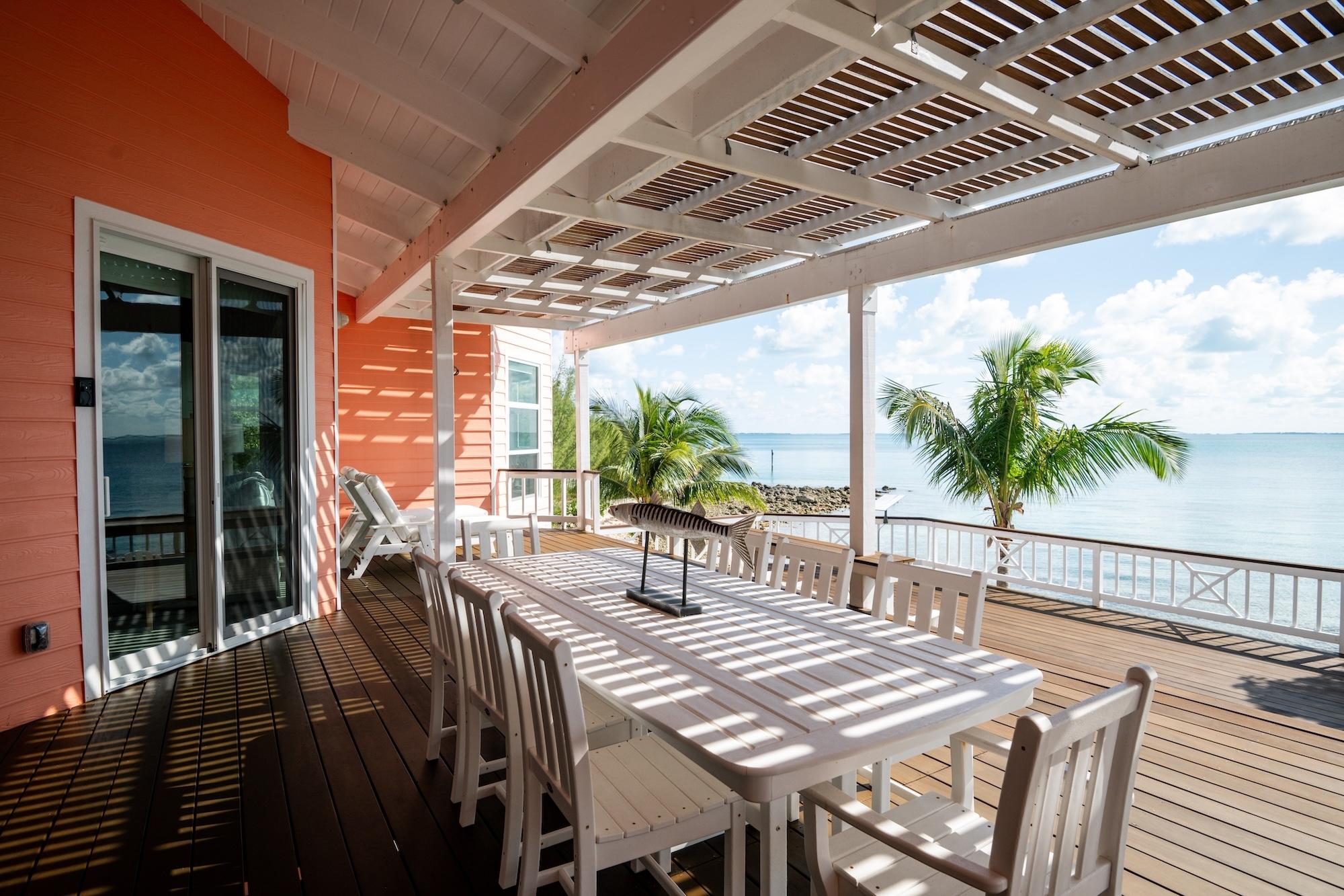 Welcome to Kealoha, a meticulously crafted 3,757 sq. ft. waterfront residence on Scotland Cay. Designed with masonry construction and exceptional durability, this home features wide Brazilian Teak IPE decks, impact-resistant windows and doors, and a new Galvalume roof delivering both luxury and peace of mind in a premier island setting. The open-concept living area flows effortlessly to expansive outdoor spaces overlooking tranquil waters, perfect for relaxing or entertaining. The main level offers three spacious bedrooms, including a master suite, while a separate one-bedroom suite with its own entrance provides added privacy for guests or flexible use as an office. Outdoors, a private dock with gazebo, an oversized marina slip with a Deco lift, and beautifully maintained grounds set the stage for effortless island living. Additional highlights include a whole-house Kubota generator, lower-level garage with workshop, new A/C units, and thoughtful structural engineering throughout making Kealoha a sanctuary of comfort, resilience, and refined coastal living.