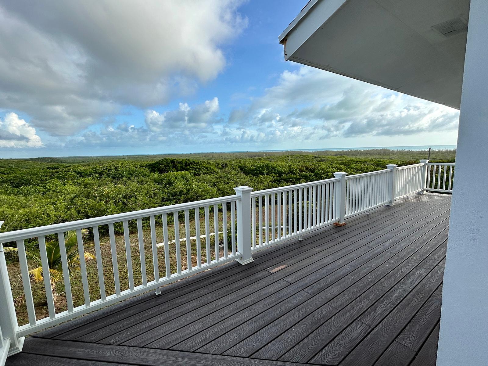 This open floorpan hilltop 2 storey home lies on a landscaped 3/4 acre and features stunning panoramic views over the north of Long Island including both sunrise and sunset (or moonrise & moonset) over water for the majority of the year. This property is turnkey and part of the Stella Maris Resort community minutes walking distance to the main resort restaurant, bars, and pools. Completely gutted in 2014, every element of the rebuild focused on reinforcing the existing cement block construction for maximum strength protection with simpson strong ties, stainless steel 5/8 threaded rods for deck supports, hurricane clips throughout the attic and 3 layers of waterproof paint underneath all flooring with floating vinyl plank flooring allowing for easy access as necessary. All baseboard trim is PVC. All electrical and plumbing systems were replaced. Drains were put in for both of the master bedroom bathtubs and the kitchen was specifically designed to sit off the ground in the event of water. All seating furniture is designed for indoor/outdoor reconfiguration.
